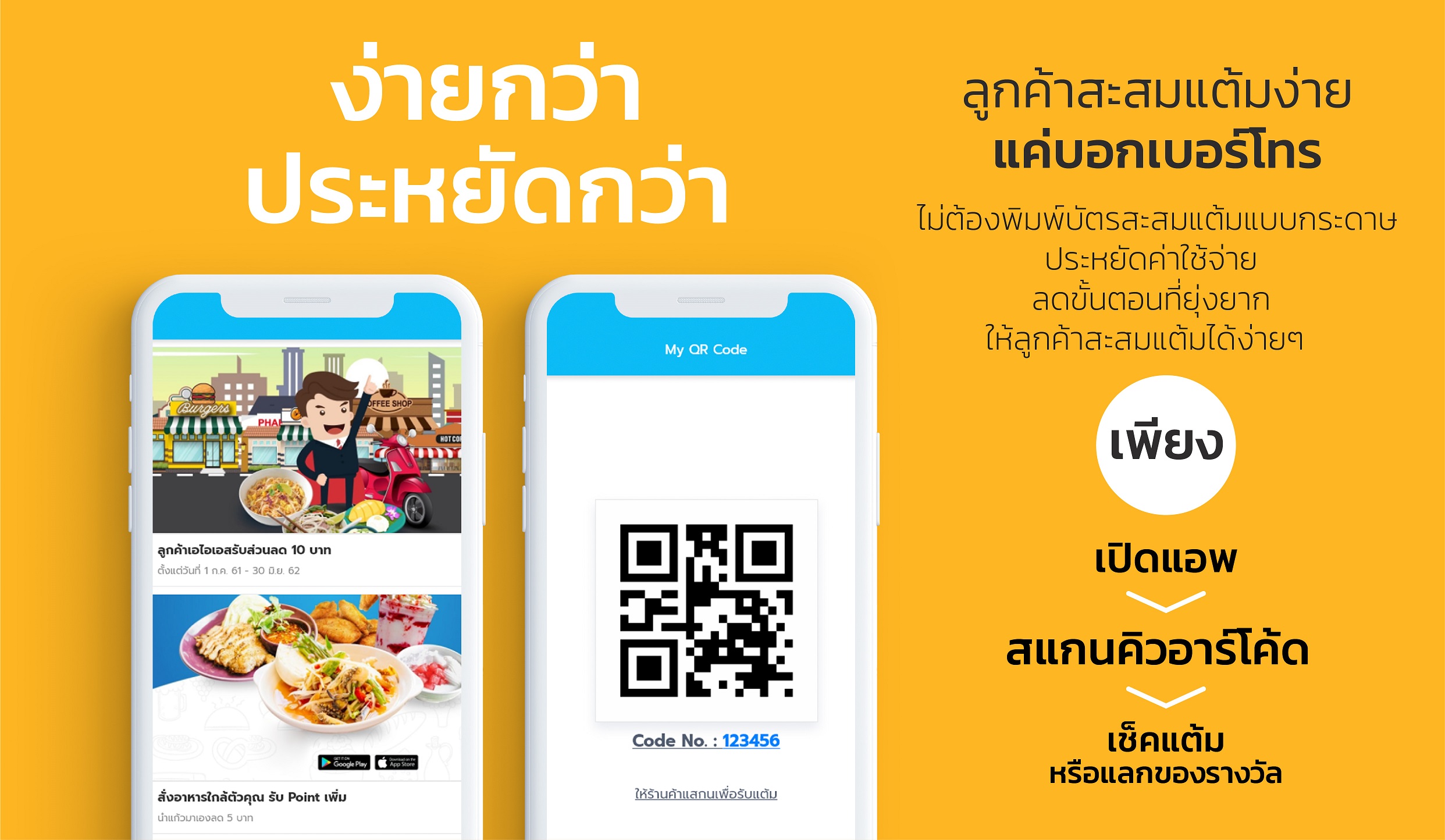 ไม่ต้องพิมพ์บัตรสะสมแต้มแบบกระดาษ ประหยัดค่าใช้จ่าย ลดขั้นตอนที่ยุ่งยาก ให้ลูกค้าสะสมแต้มได้ง่าย ๆ เพียงสแกน QR Code เพื่อรับแต้ม > เช็คแต้ม หรือแลกของรางวัล